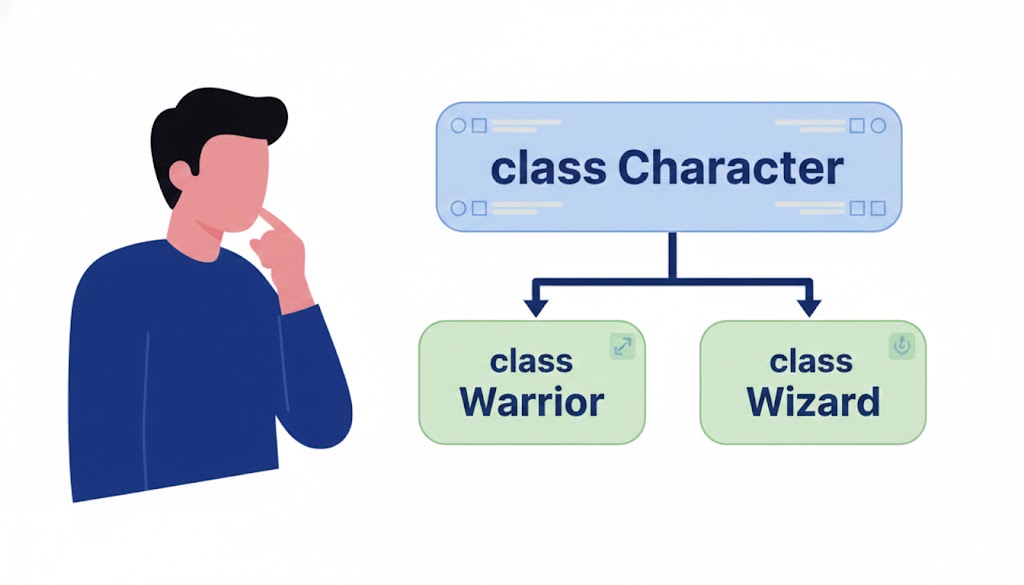 - 書き忘れを防ぐ(安全): 「名前を入れないと冒険に出られない(インスタンスを作れない)」というルールを作れるので、バグが減ります。